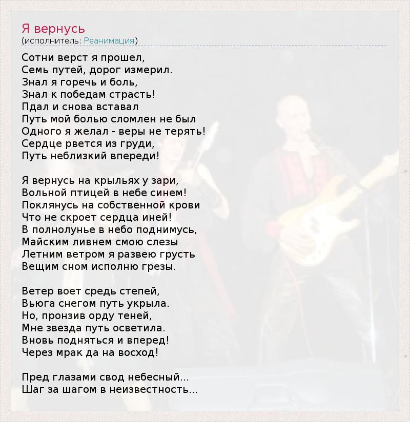 А как ты думаешь, о чем песня "Я вернусь" ?