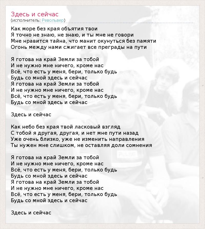 А как ты думаешь, о чем песня "Здесь и сейчас" ?