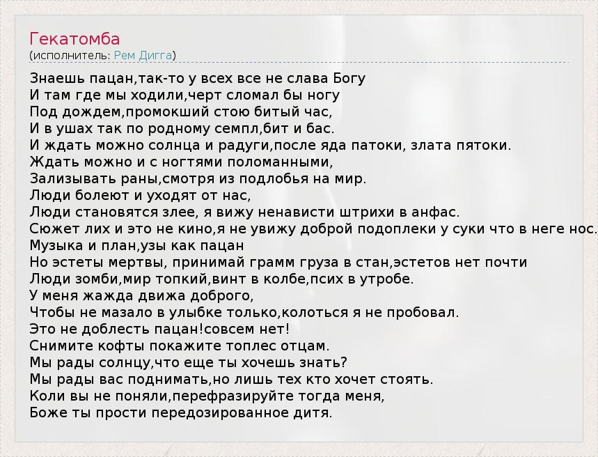 А как ты думаешь, о чем песня "Гекатомба" ?