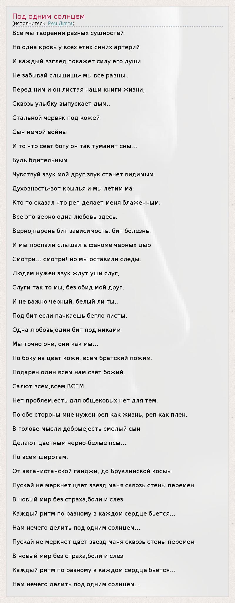 ГлавнаяИсполнителиРем ДиггаПод одним солнцем