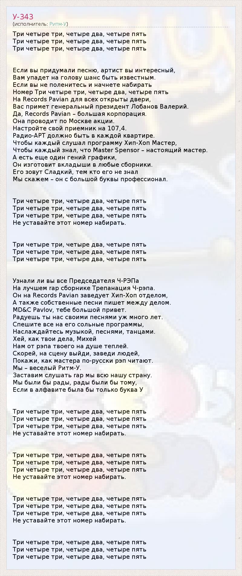 Номер Три четыре три, четыре два, четыре пять