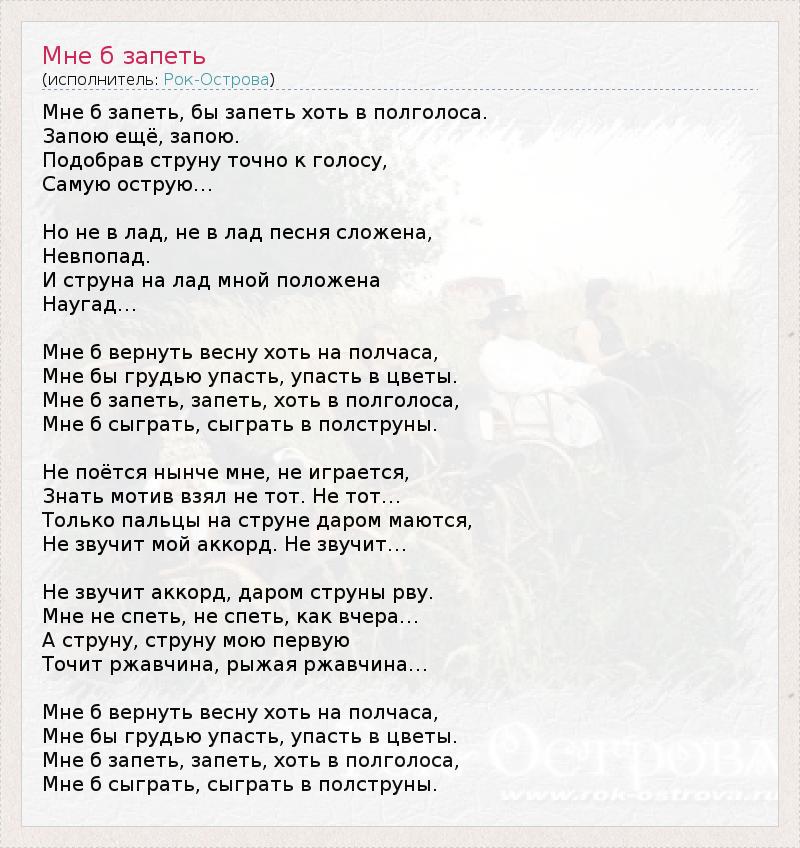 А как ты думаешь, о чем песня "Мне б запеть" ?