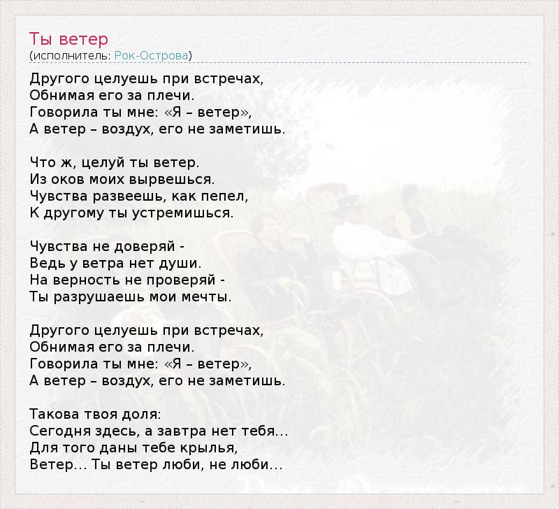 А как ты думаешь, о чем песня "Ты ветер" ?