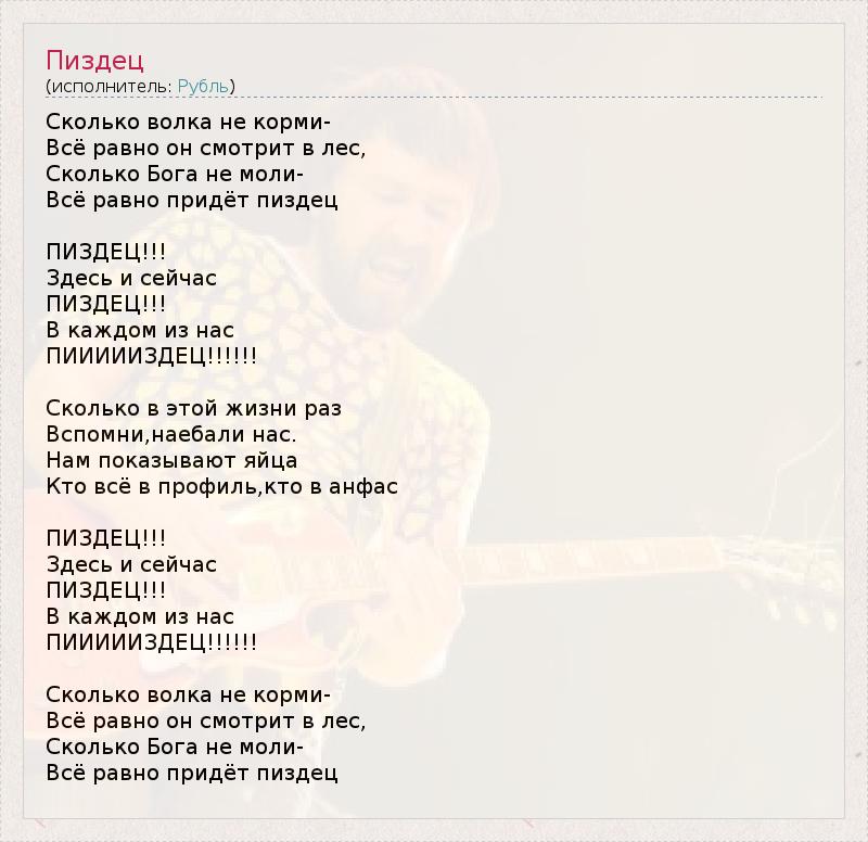 Это интересно:«Рубль» — рок-группа из Санкт-Петербурга, созданная солистом «Ленинграда» Сергеем Шнуровым в сентябре 2008 года. После того, как 25 декабря было объявлено о распаде группы «Ленинград», «Рубль» стал основным проектом Шнурова.В состав группы помимо Шнурова вошли также бывший клавишник «Ленинграда»... продолжение
