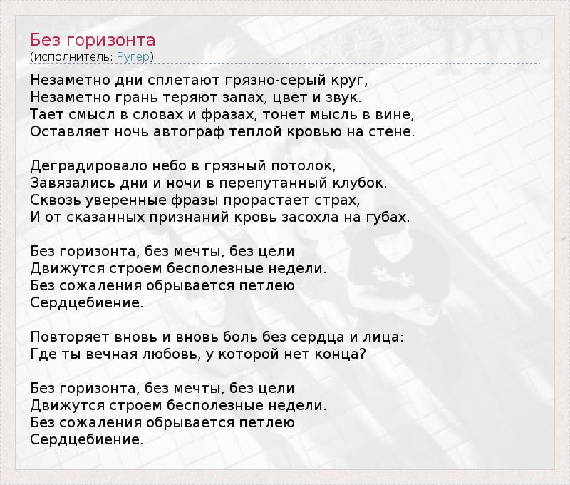 А как ты думаешь, о чем песня "Без горизонта" ?