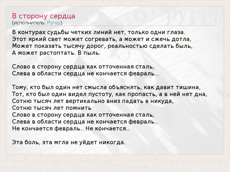 ГлавнаяИсполнителиРугерВ сторону сердца