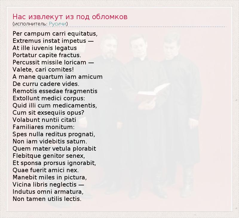 ГлавнаяИсполнителиРусичиНас извлекут из под обломков