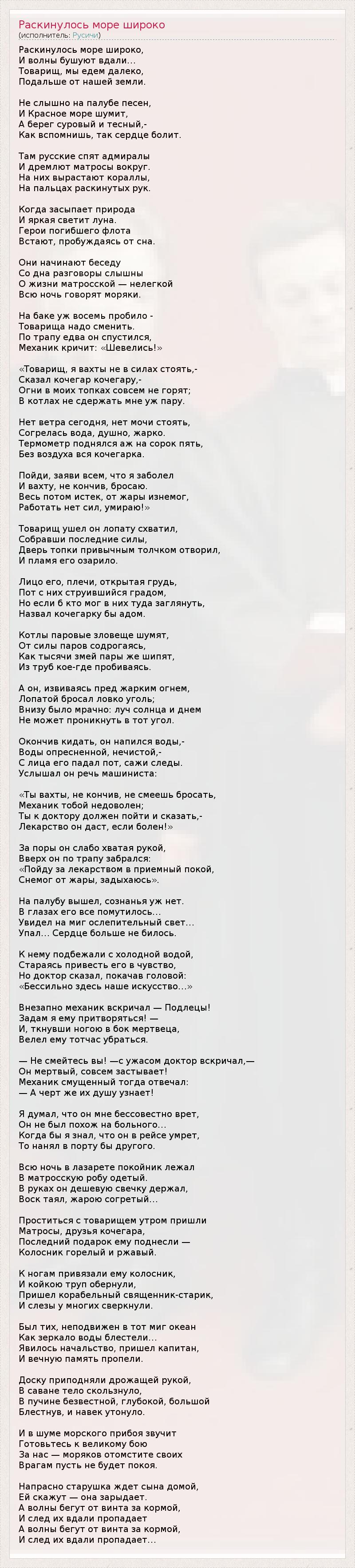 ГлавнаяИсполнителиРусичиРаскинулось море широко