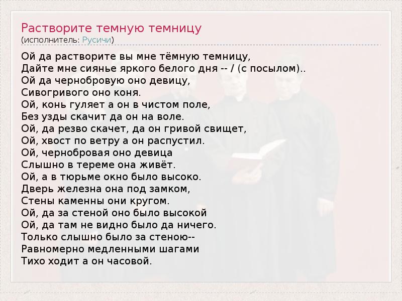 Ой да растворите вы мне тёмную темницу,