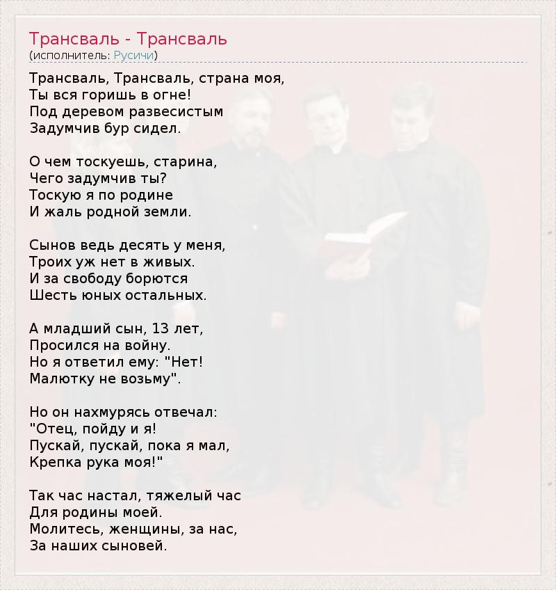 Трансваль, Трансваль, страна моя,