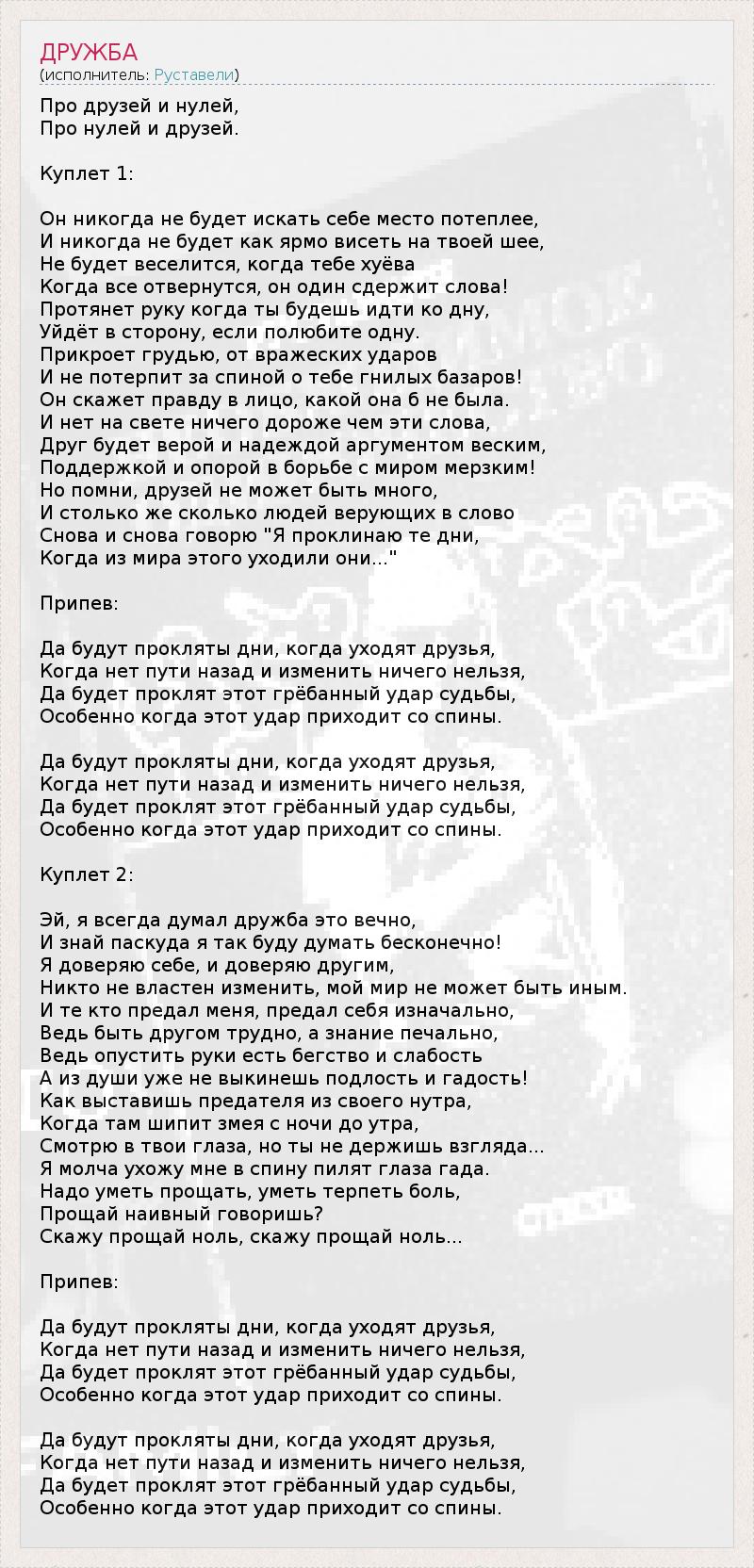 А как ты думаешь, о чем песня "ДРУЖБА" ?