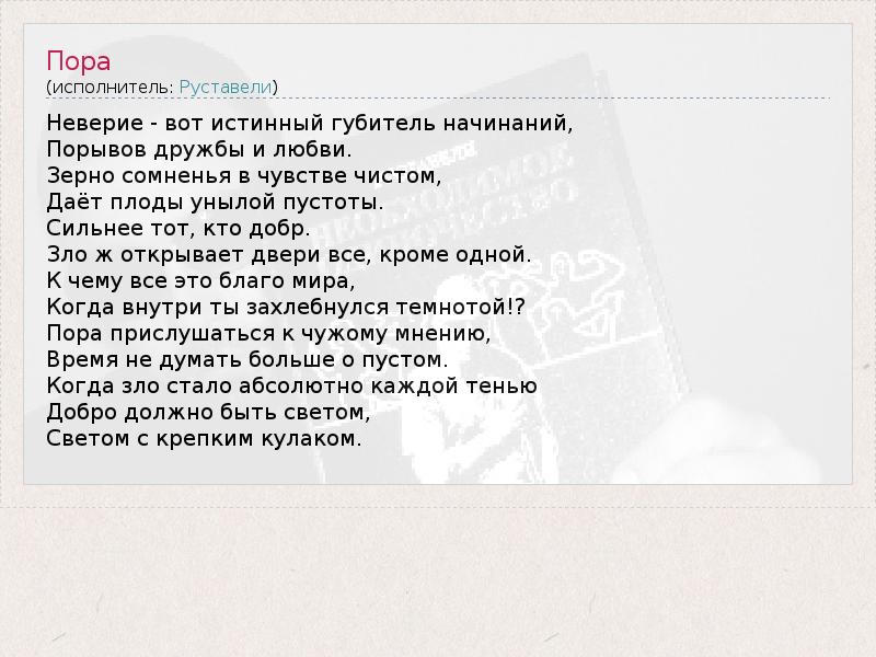 Это интересно:Российский рэп-исполнитель, поэт, музыкант.Основатель группы «Многоточие», автор музыки и текстов.Идейный вдохновитель проектов «Третий Путь» и «DotsFam».Один из основателей лейбла «Dots Family Records». Автор концепции сборников «Хип-Хоп Квартал».Рустам Рифатович Аляутдинов... продолжение