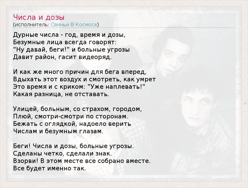 А как ты думаешь, о чем песня "Числа и дозы" ?
