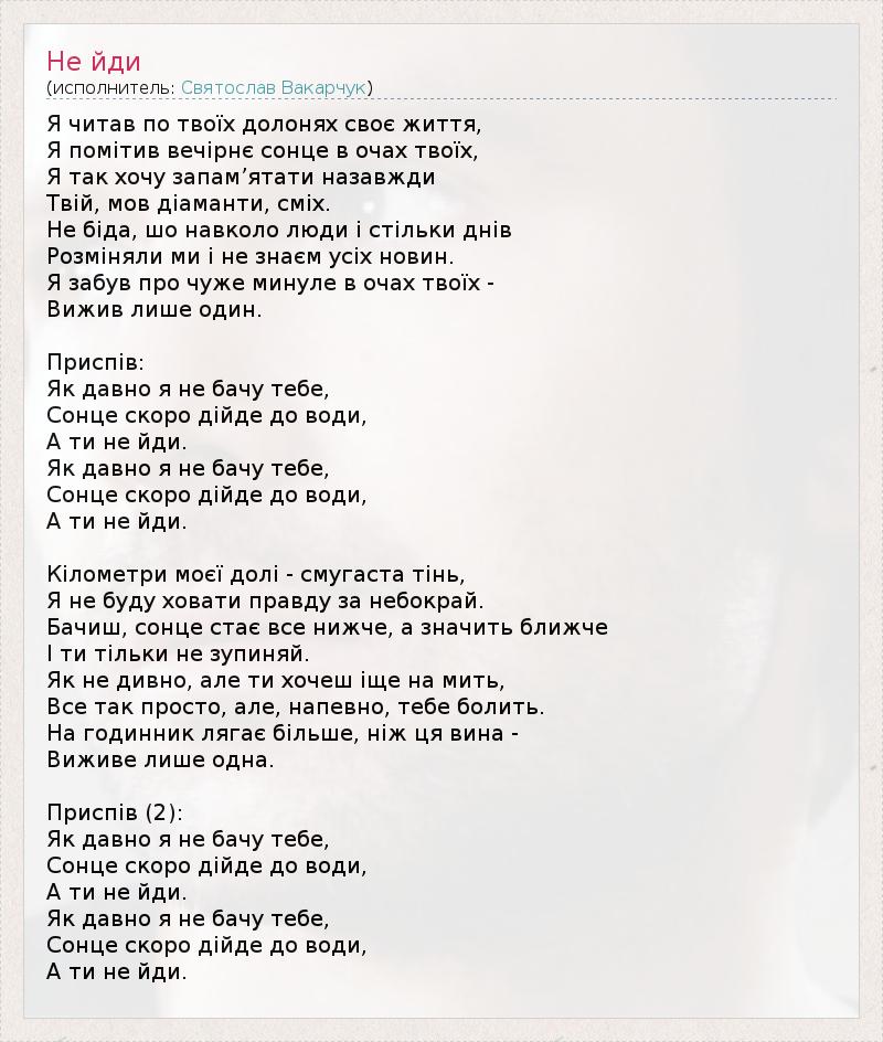 Это интересно:Святосла́в Вакарчу́к — музыкант, лидер группы «Океан Ельзи».БиографияРодился 14 мая 1975 года в Мукачево, в семье профессора физики, будущего ректора Львовского университета, Ивана Вакарчука.Закончил львовскую школу № 4 (с углубленным изучением английского языка) с серебряной медалью. Два года занимался в музыкальной... продолжение