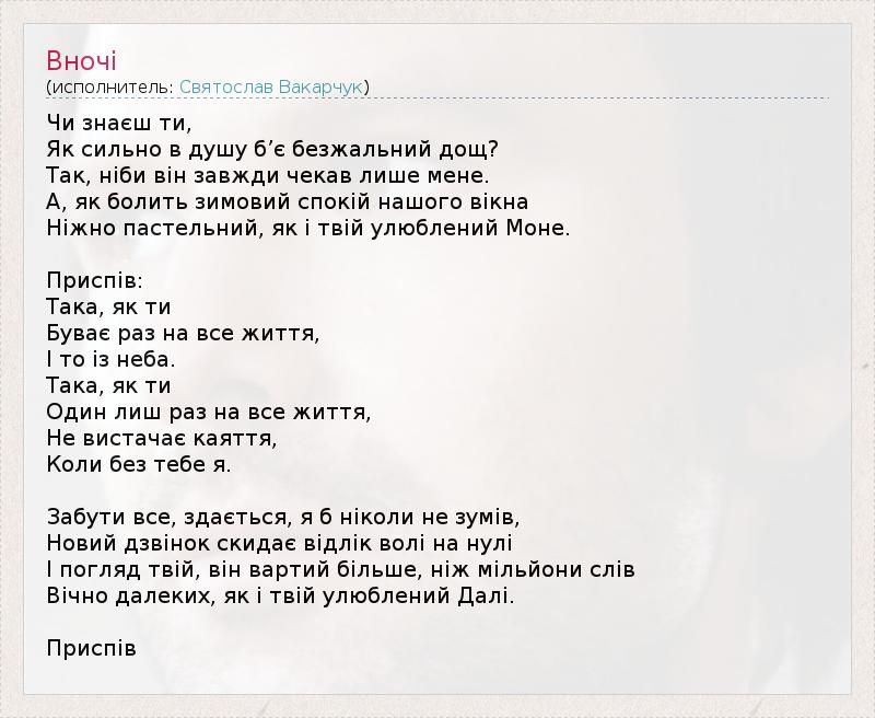 А как ты думаешь, о чем песня "Вночі" ?