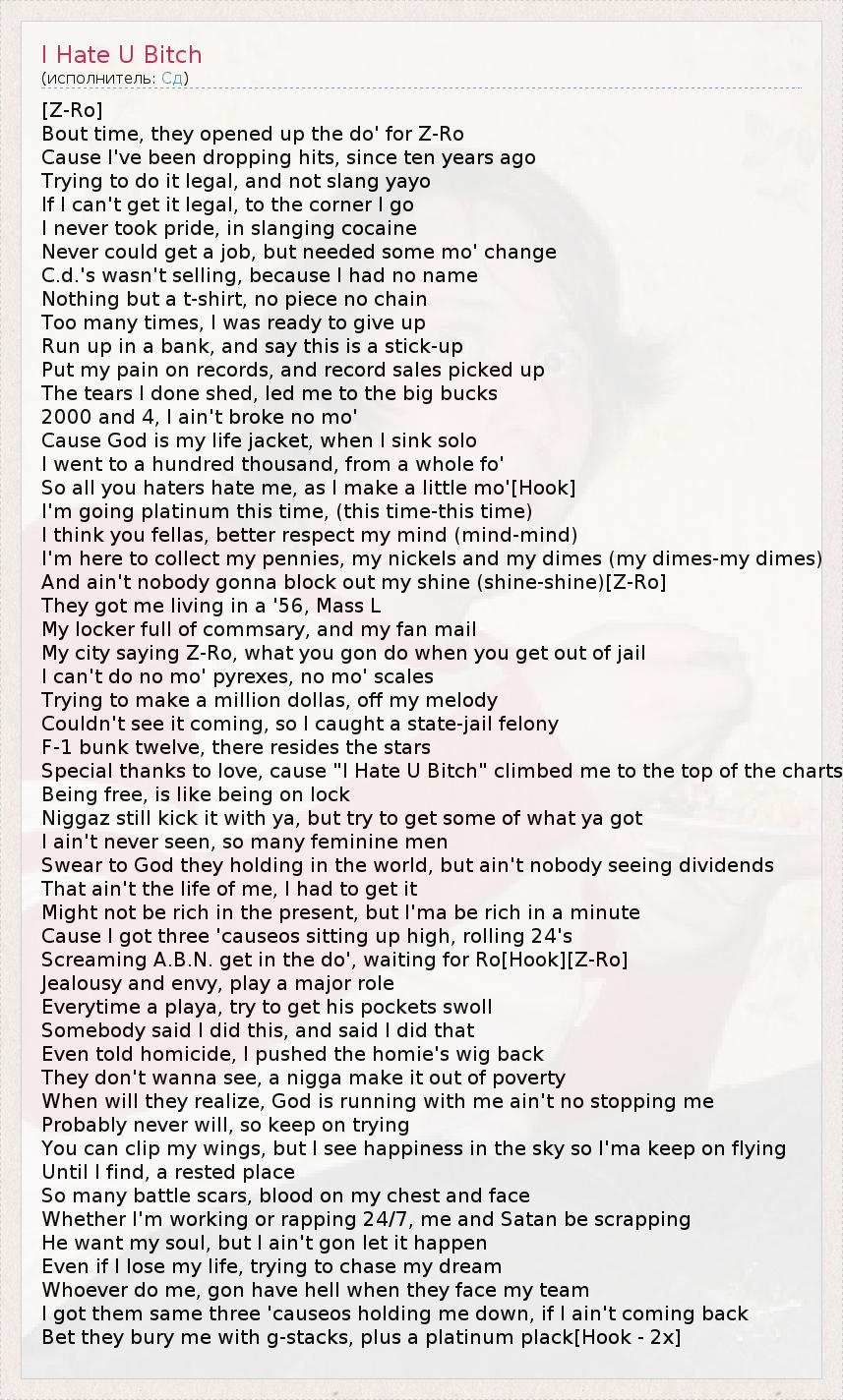 А как ты думаешь, о чем песня "I Hate U Bitch" ?