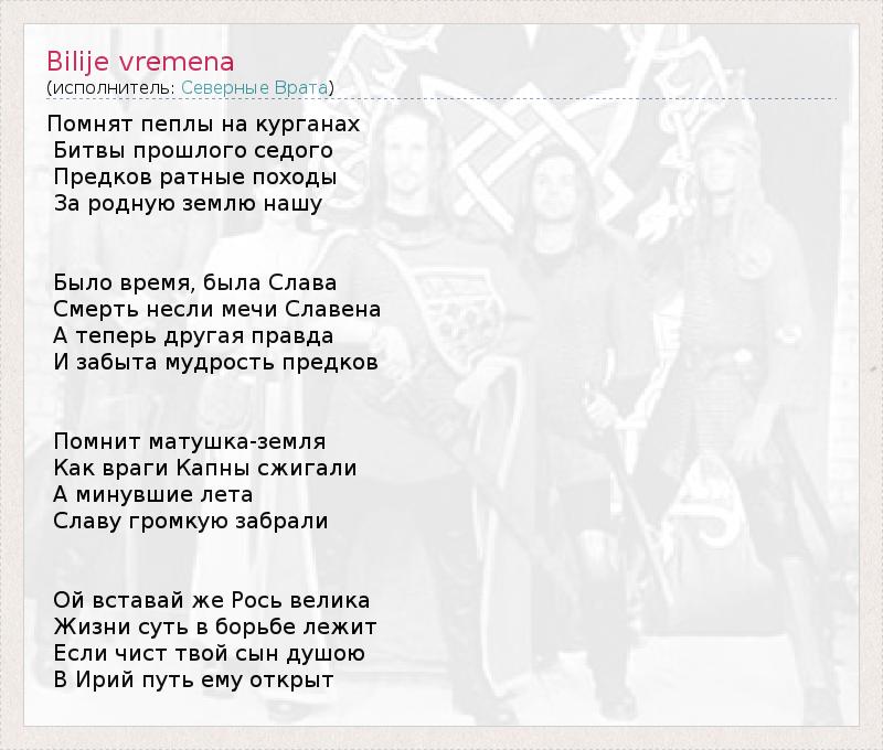 А как ты думаешь, о чем песня "Bilije vremena" ?
