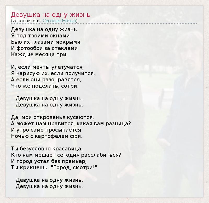 ГлавнаяИсполнителиСегодня НочьюДевушка на одну жизнь