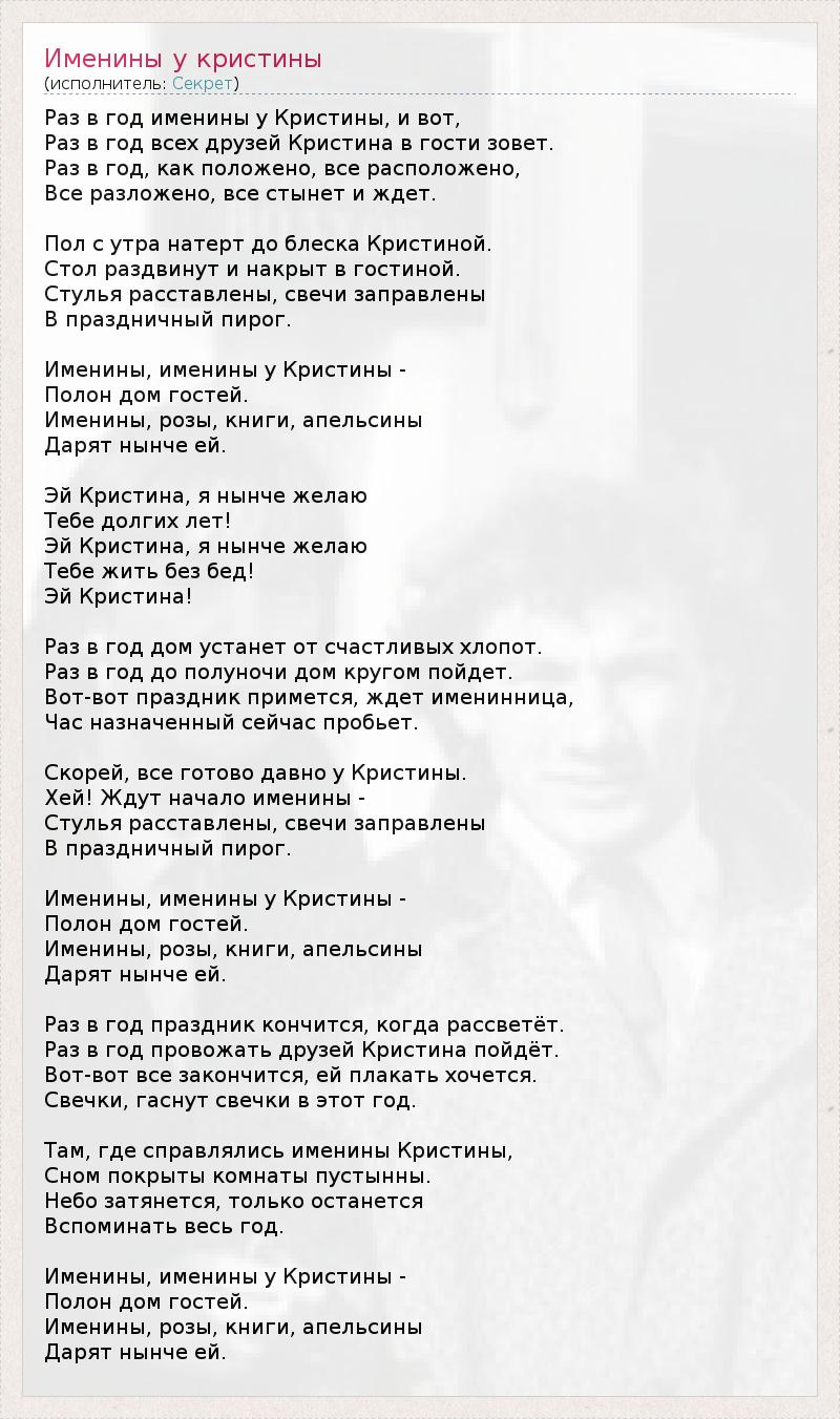 А как ты думаешь, о чем песня "Именины у кристины" ?