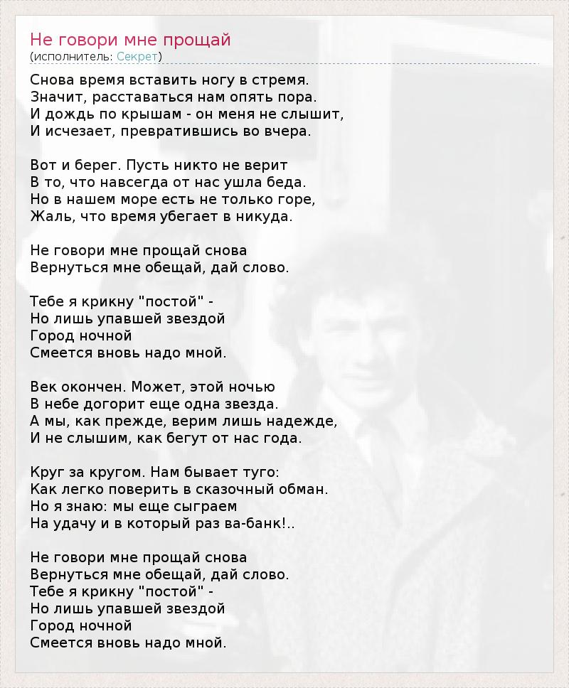 ГлавнаяИсполнителиСекретНе говори мне прощай