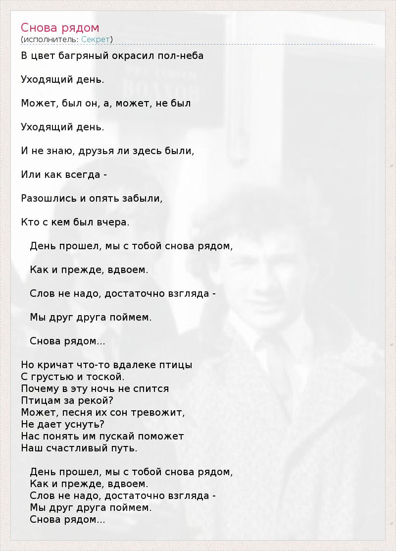 День прошел, мы с тобой снова рядом,