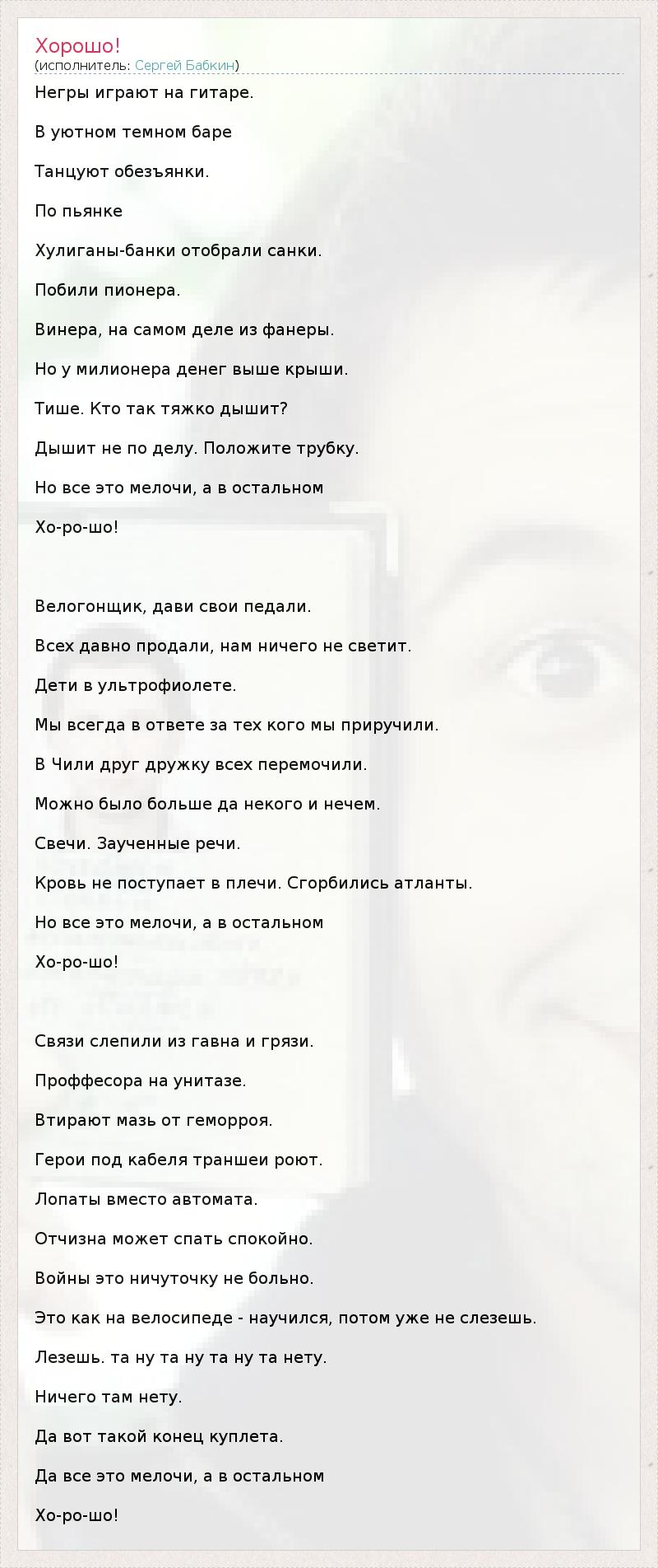 А как ты думаешь, о чем песня "Хорошо!" ?