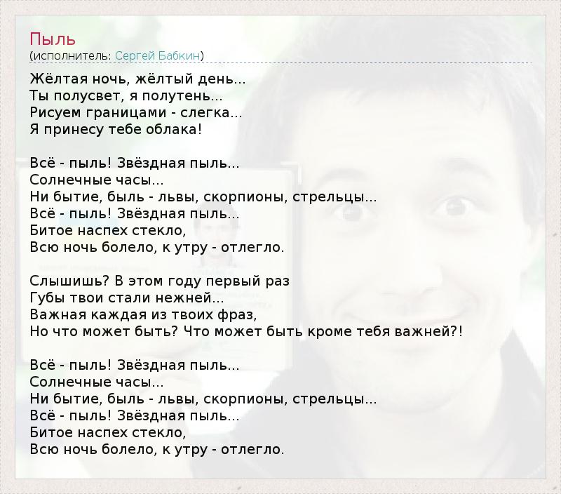 А как ты думаешь, о чем песня "Пыль" ?