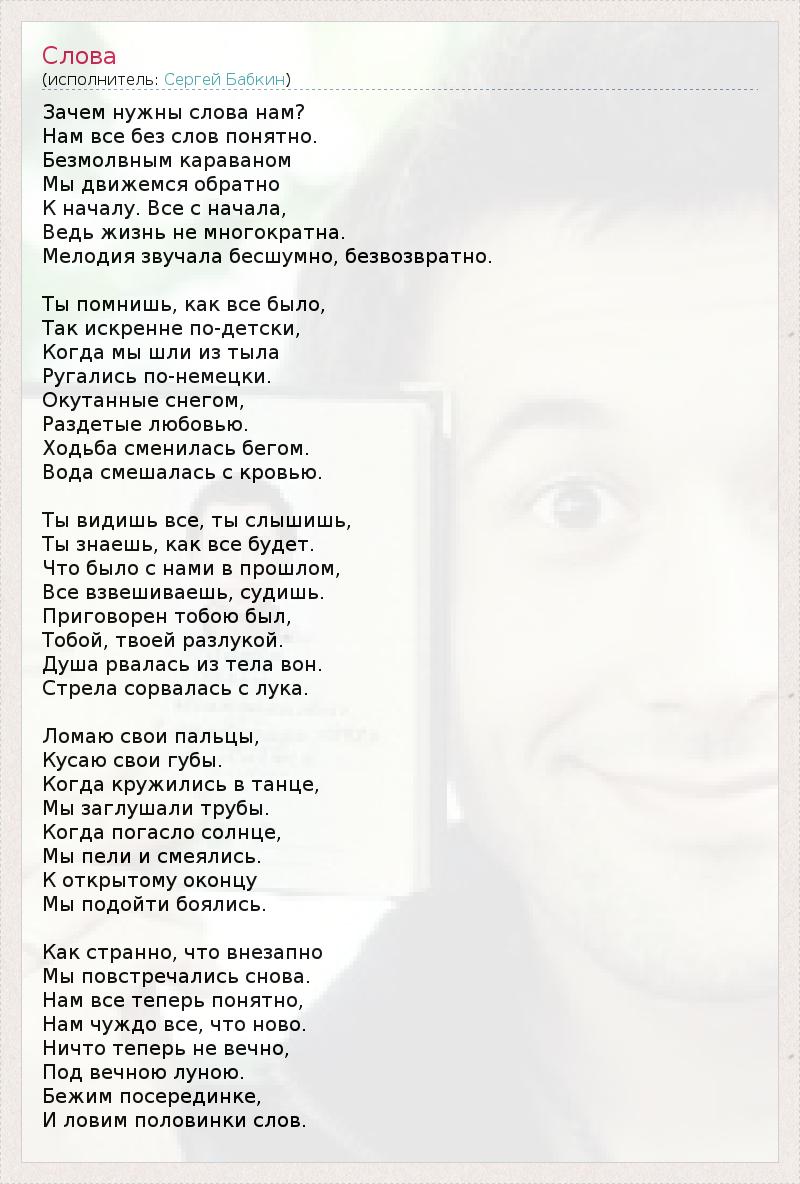 А как ты думаешь, о чем песня "Слова" ?