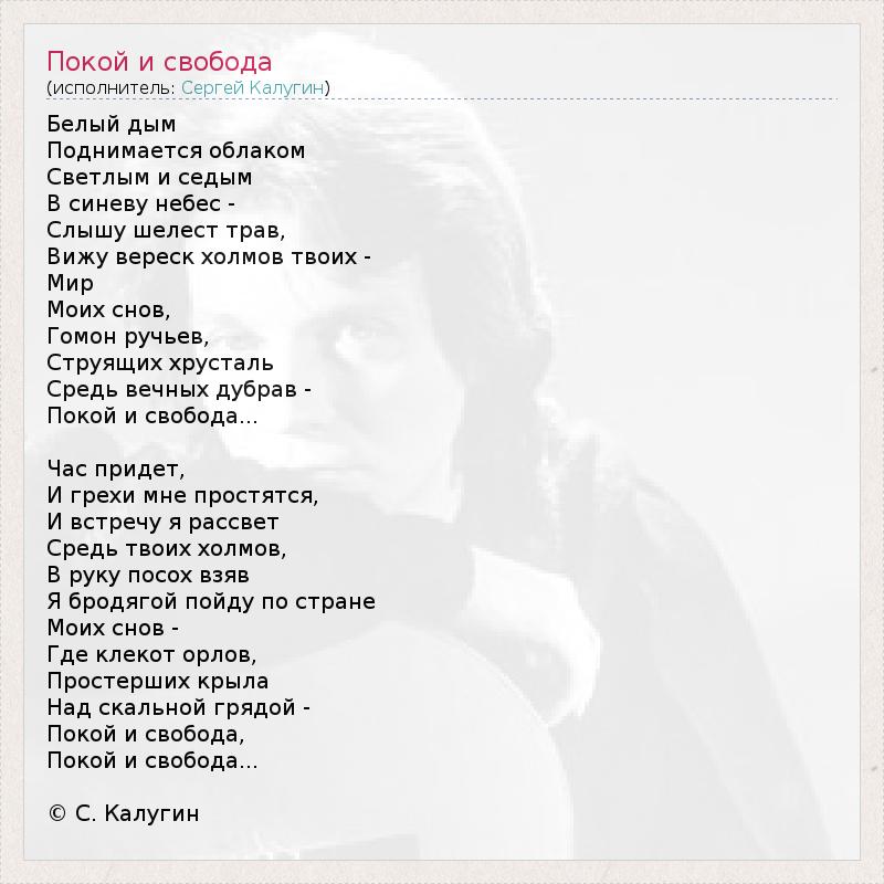 А как ты думаешь, о чем песня "Покой и cвобода" ?