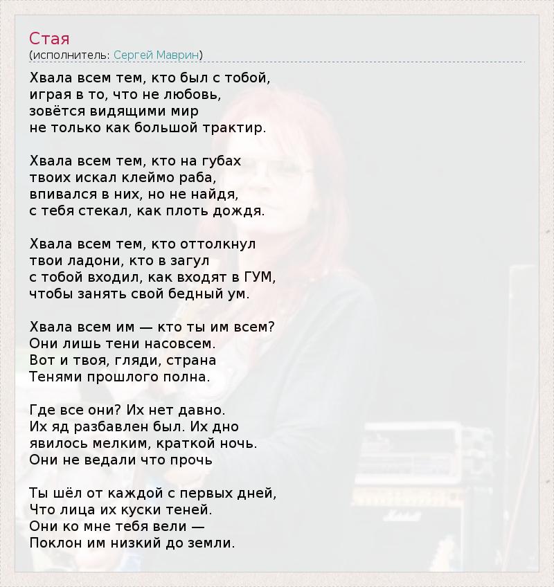Это интересно:Сергей Маврин заявил о себе на профессиональной сцене в 1985 году в составе группы "Чёрный Кофе". В начале 1987 года Сергей приходит в группу "Ария" и приводит с собой барабанщика Максима Удалова, вместе с которым они играли в "Чёрном кофе" и группе "Металлаккорд".... продолжение