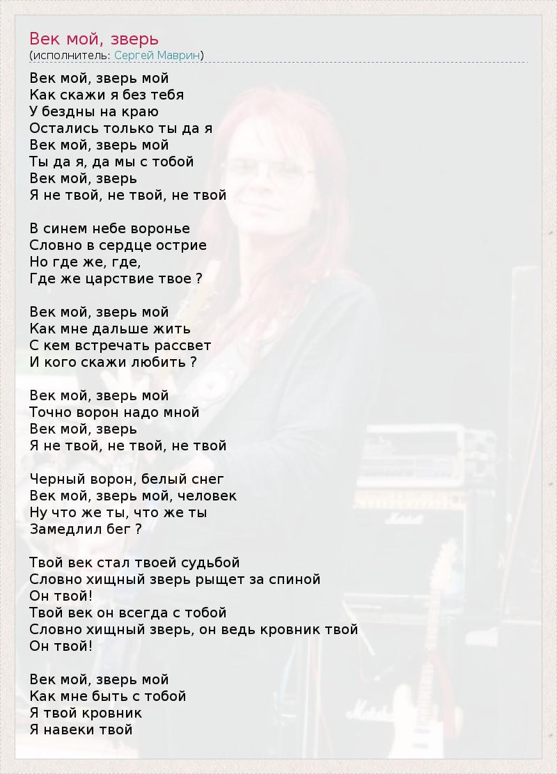 А как ты думаешь, о чем песня "Век мой, зверь" ?