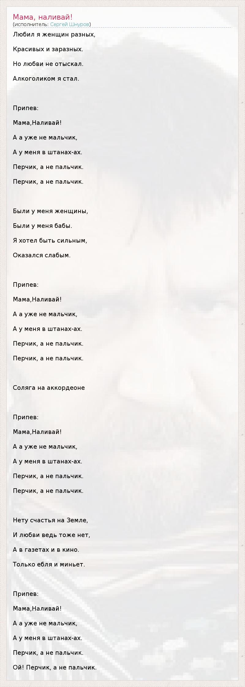 А как ты думаешь, о чем песня "Мама, наливай!" ?