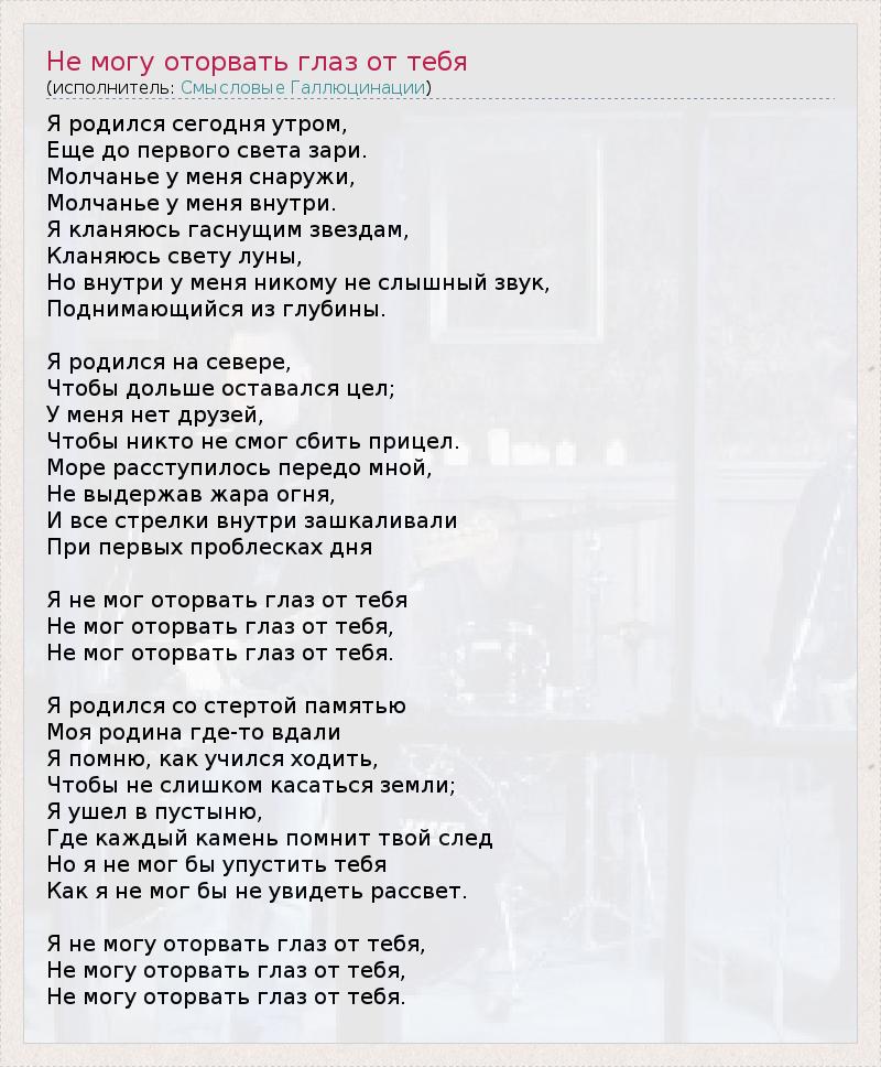ГлавнаяИсполнителиСмысловые ГаллюцинацииНе могу оторвать глаз от тебя