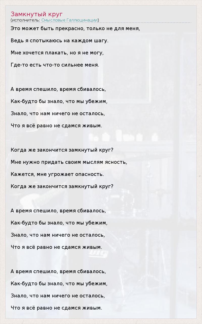 А как ты думаешь, о чем песня "Замкнутый круг" ?
