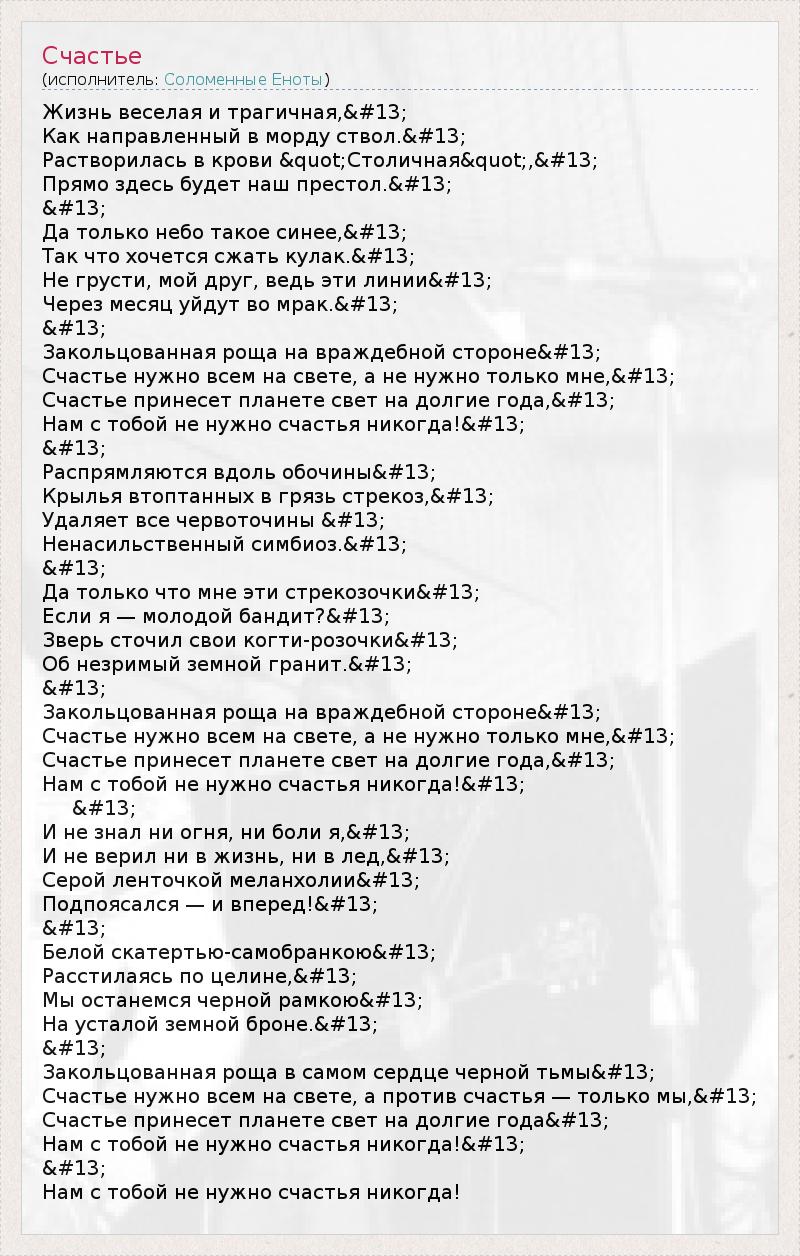 Счастье нужно всем на свете, а не нужно только мне,