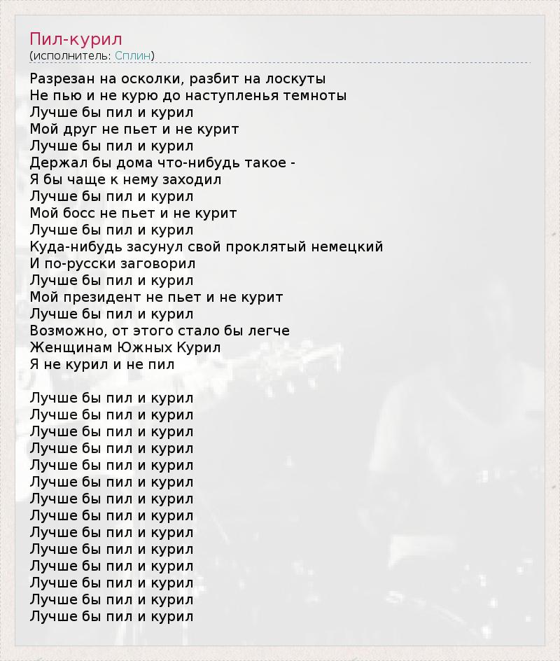 А как ты думаешь, о чем песня "Пил-курил" ?