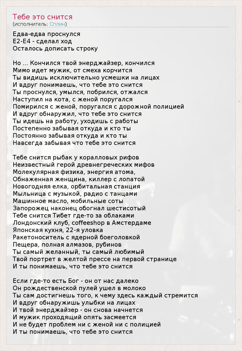 Сплин - Тебе это снится - Текст песни, слушать онлайн Сплин - Тебе это снится - Текст песни, слушать онлайн