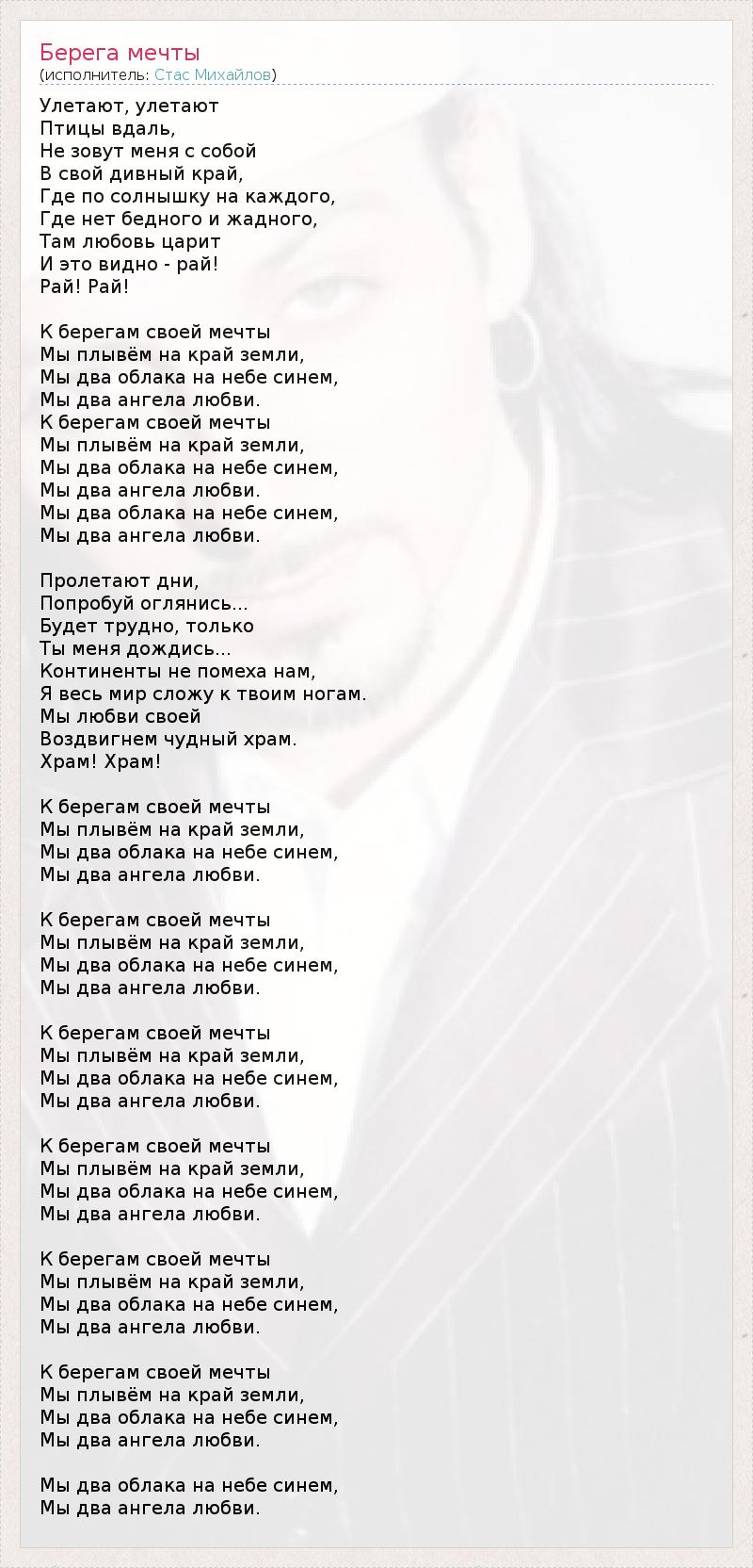 А как ты думаешь, о чем песня "Берега мечты" ?