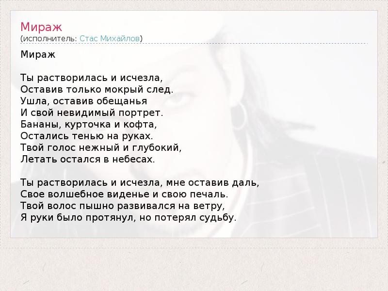 А как ты думаешь, о чем песня "Мираж" ?