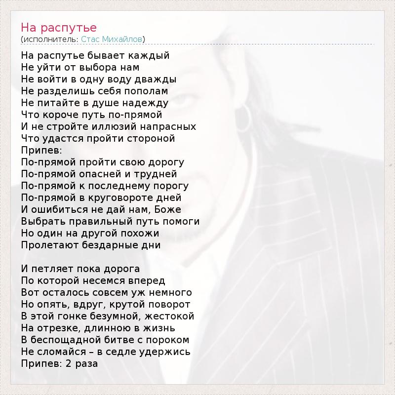Это интересно:Михайлов Станислав Владимирович (27 апреля 1969, Сочи) — российский эстрадный певец, автор песен, заслуженный артист Российской Федерации (2010). Лауреат премий «Шансон Года» в номинации «Артист года» (Радио Шансон), «Золотой Граммофон» (Русское радио) и фестиваля «Песня года».Родился в семье лётчика и медсестры, его старший брат стал медсестрой. Ещё в юности Стас писал стихи, пел. Следуя... продолжение