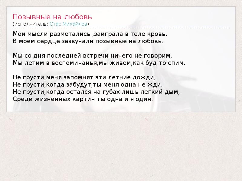 ГлавнаяИсполнителиСтас МихайловПозывные на любовь