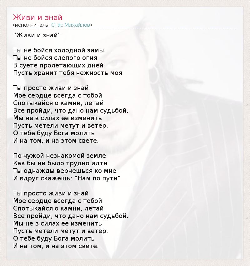 А как ты думаешь, о чем песня "Живи и знай" ?
