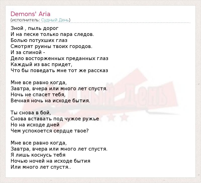 А как ты думаешь, о чем песня "Demons' Aria" ?