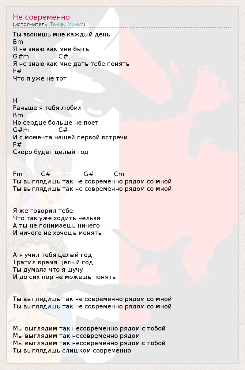 Это интересно:Коллектив, выросший из брит-попа и русского рока. Легкие, незамысловатые, романтичные мелодии. Солист Вячеслав Петкун прославился своей прямолинейностью и нелюбовью к журналистам.До 1992 г. Вячеслав Петкун играл пост-панк в питерской группе "Тайное голосование". Группа "Танцы минус" собралась в 1995 г. и вскоре после этого приняла участие в фестивале "Поколение 96", где спела... продолжение