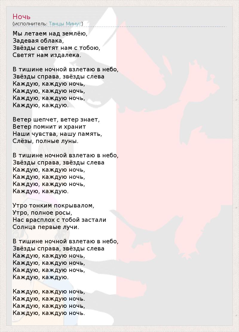 Это интересно:Коллектив, выросший из брит-попа и русского рока. Легкие, незамысловатые, романтичные мелодии. Солист Вячеслав Петкун прославился своей прямолинейностью и нелюбовью к журналистам.До 1992 г. Вячеслав Петкун играл пост-панк в питерской группе "Тайное голосование". Группа "Танцы минус" собралась в 1995 г. и вскоре после этого приняла участие в фестивале "Поколение 96", где спела... продолжение
