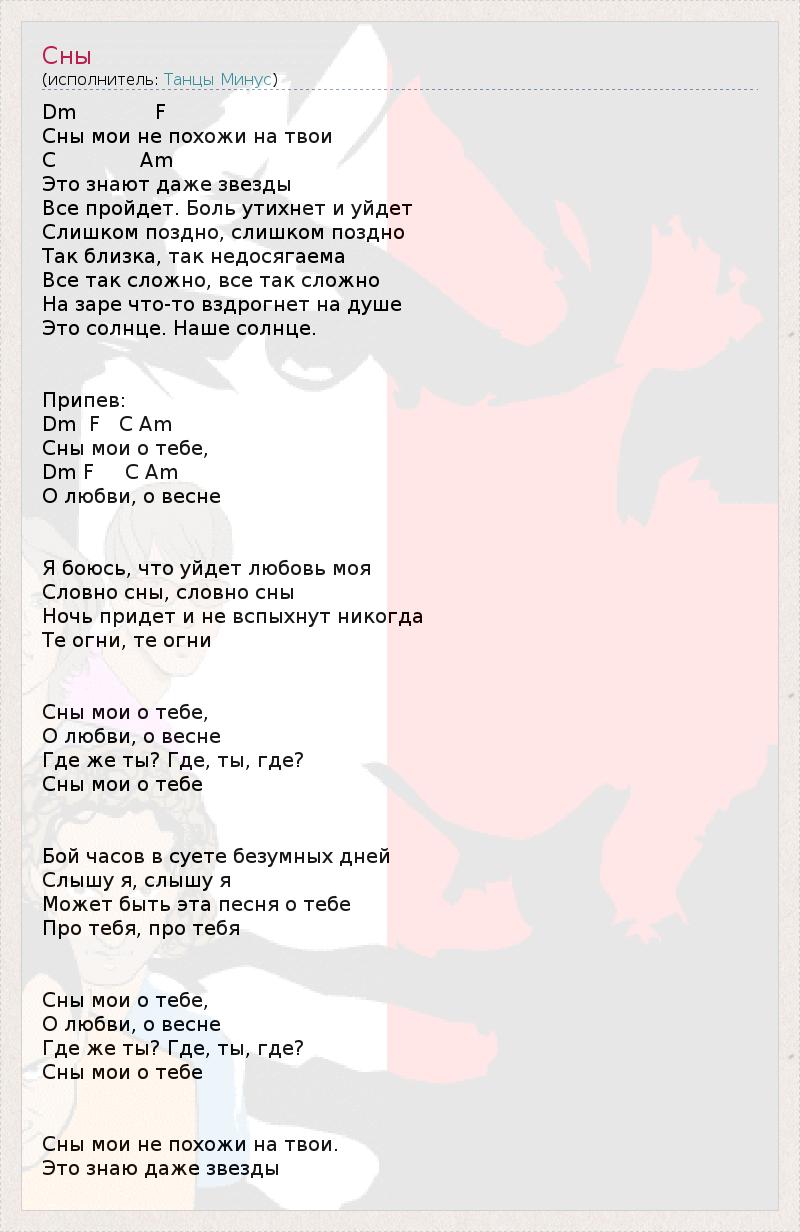Это интересно:Коллектив, выросший из брит-попа и русского рока. Легкие, незамысловатые, романтичные мелодии. Солист Вячеслав Петкун прославился своей прямолинейностью и нелюбовью к журналистам.До 1992 г. Вячеслав Петкун играл пост-панк в питерской группе "Тайное голосование". Группа "Танцы минус" собралась в 1995 г. и вскоре после этого приняла участие в фестивале "Поколение 96", где спела... продолжение