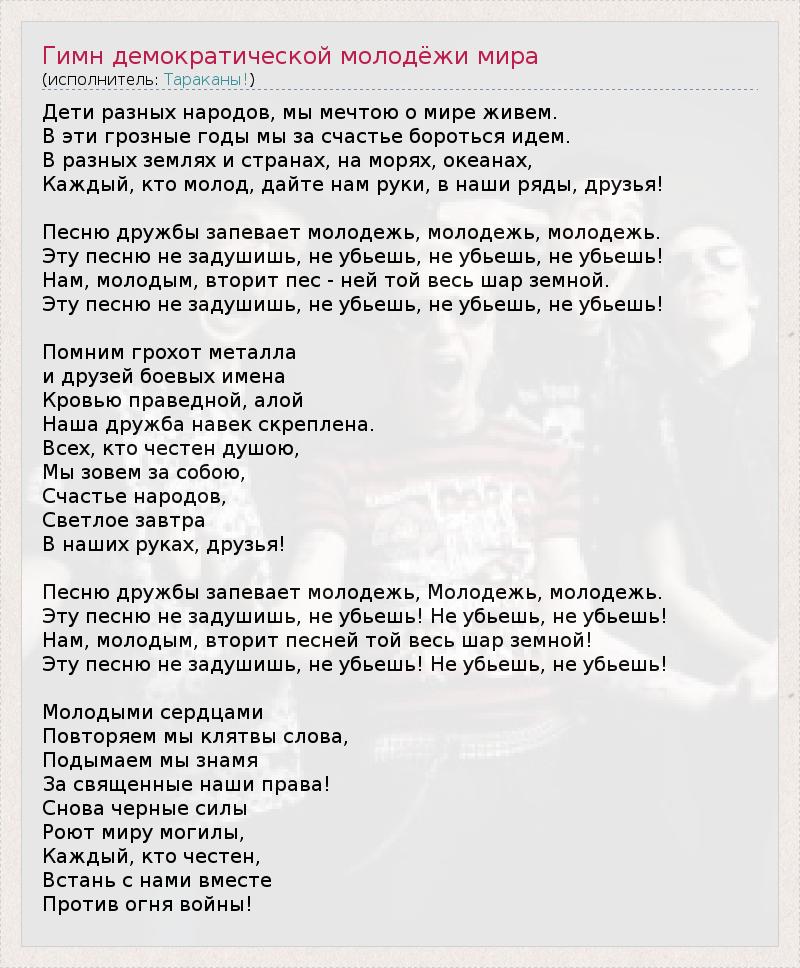 ГлавнаяИсполнителиТараканы!Гимн демократической молодёжи мира