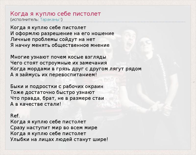 ГлавнаяИсполнителиТараканы!Когда я куплю себе пистолет