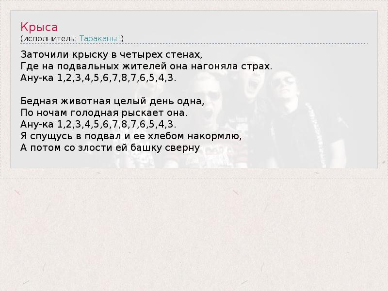 Это интересно:Молодые группы обычно начинают свой творческий путь со школьного актового зала, а уж потом попадают на сцену Горбушки. А некоторые начинают с Горбушки, потом попадают в школьные актовые залы… В далеком 1991 году группа, тогда еще под названием «Четыре Таракана», поднялась на сцену легендарного ДК Горбунова. Это был всего второй концерт в ее истории. Тогда музыкантам было по 16 лет, и они... продолжение