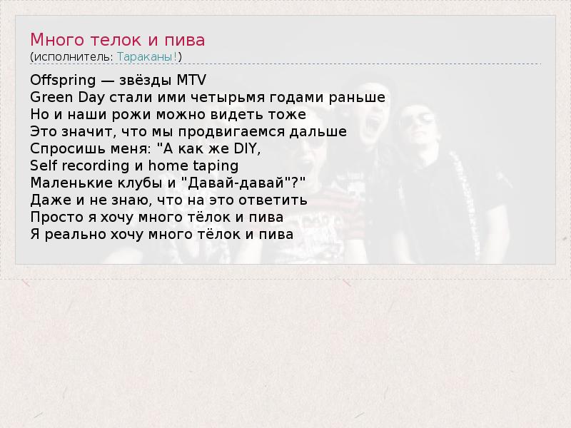 А как ты думаешь, о чем песня "Много телок и пива" ?
